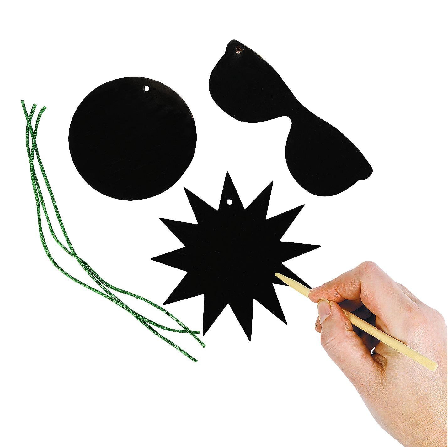 Transport your troop to the tropics with these easy-to-make Magic Color Scratch Tropical Ornaments! Simply use the included scratching tool to remove the black top layer and reveal the vibrant colors underneath. These ornaments are perfect for keeping kids entertained at luaus or summer parties, and people of all ages will enjoy creating colorful designs on the included shapes: a surfboard, a beach ball, a sun, and sunglasses. Each set includes various shapes, string for hanging, and scratching tools. It's a fantastic summer craft!