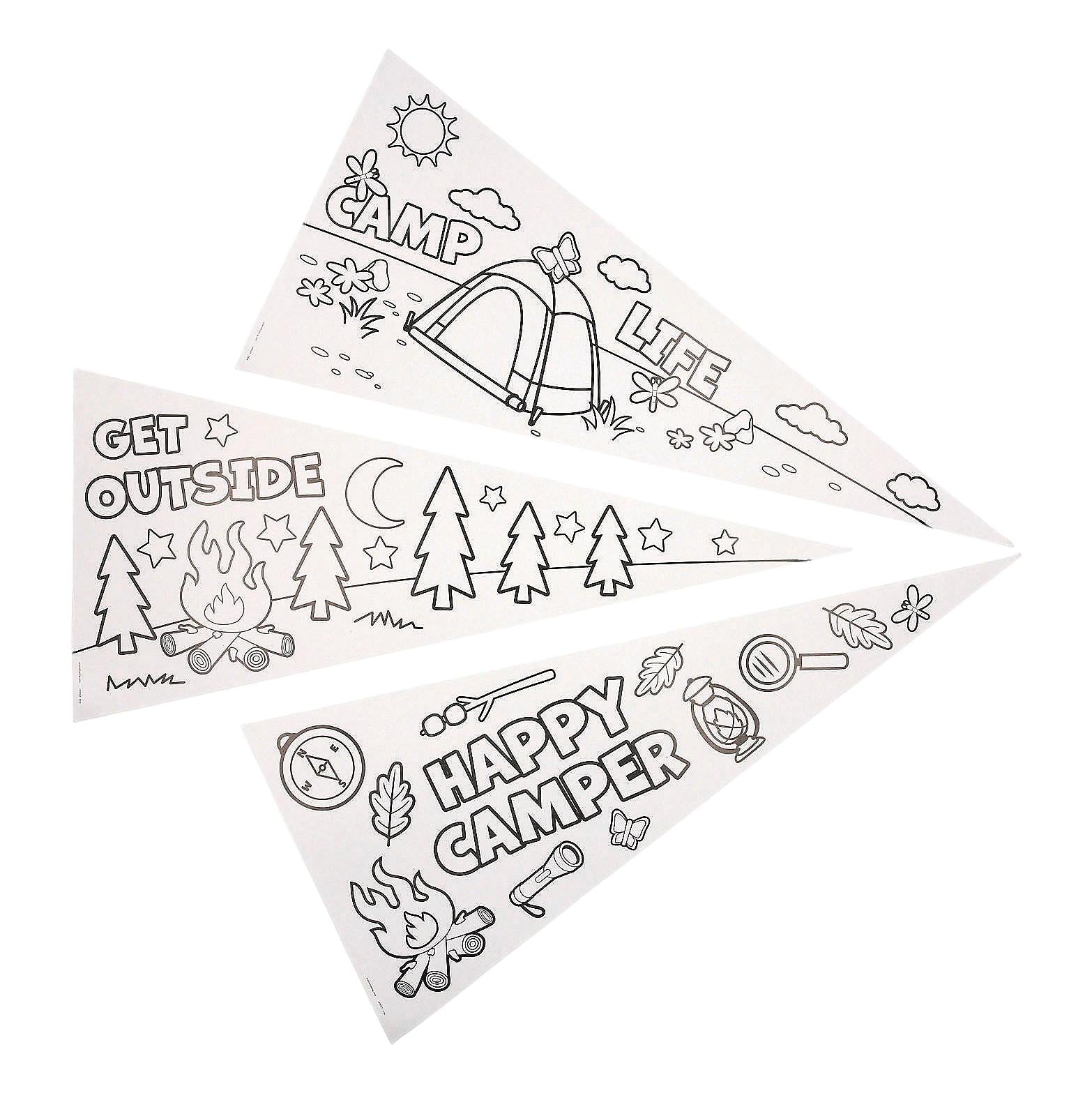 Color Your Own Paper Camp-Themed Pennants (12 Pack)