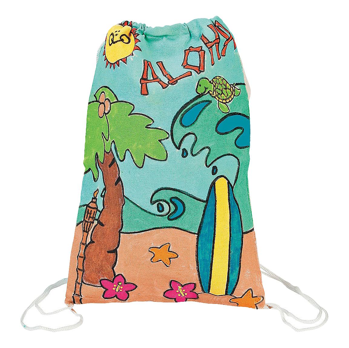 Looking for ideas for a kids' beach party? These DIY Canvas Tropical Drawstring Backpacks make for a fun and engaging activity! After the kids create their own backpacks, you can fill them with goodies and beach party favors. They'll love celebrating summer with this colorful craft! Please note that paint and markers are sold separately. It's a fantastic beach activity!