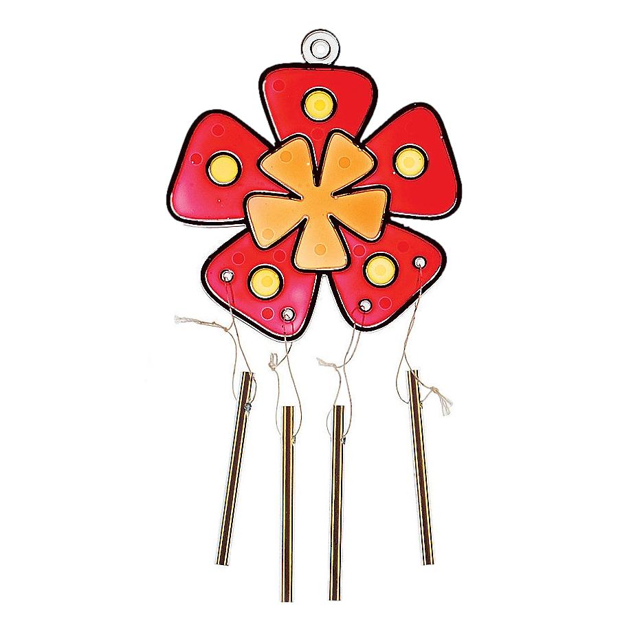 Flower Suncatcher Wind Chimes include four of each of three flower designs. Made of plastic with metal chimes, they are a great craft for spring and summer.